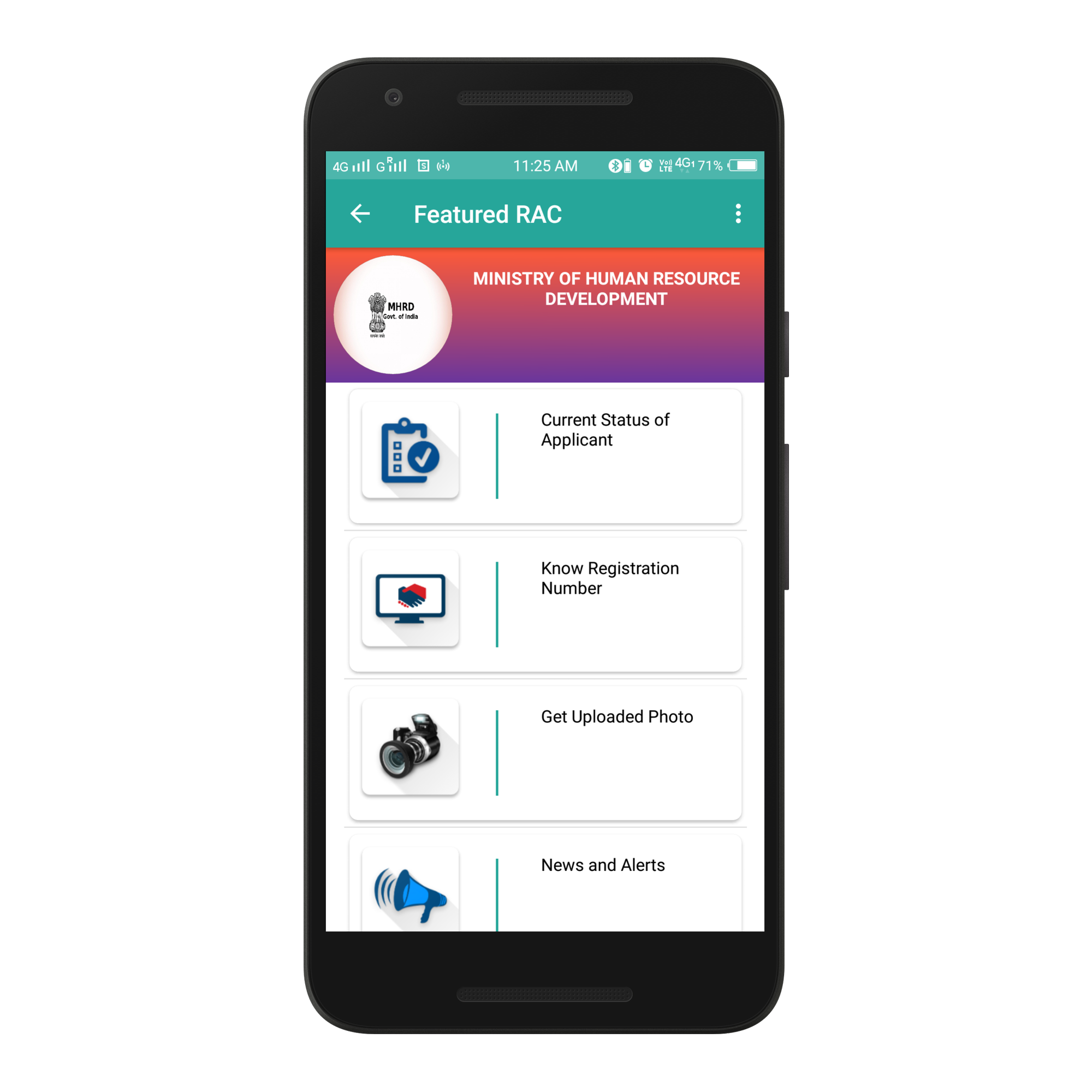 This Mobile App is very well equipped. The Applicant may know their Application Status, Retrieve the registration number, News and Alerts, Live Advertisements, Uploaded Photo and give any query / question / problem / feedback.